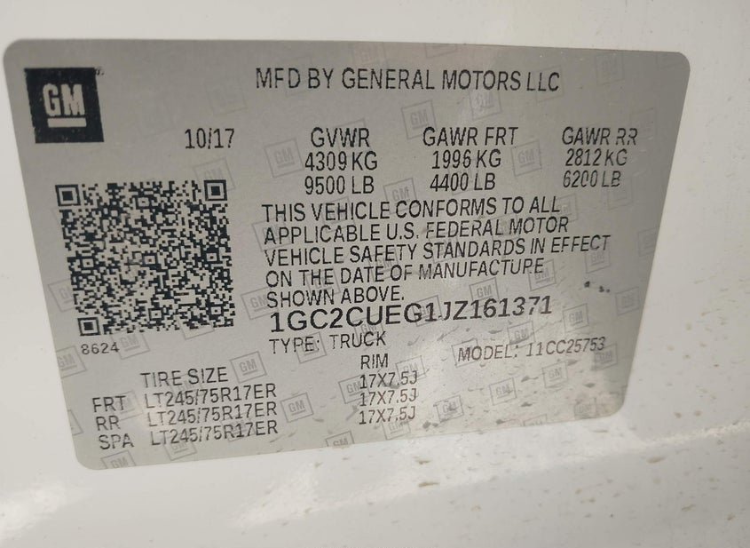 - VIN: 1GC2CUEG1JZ161371