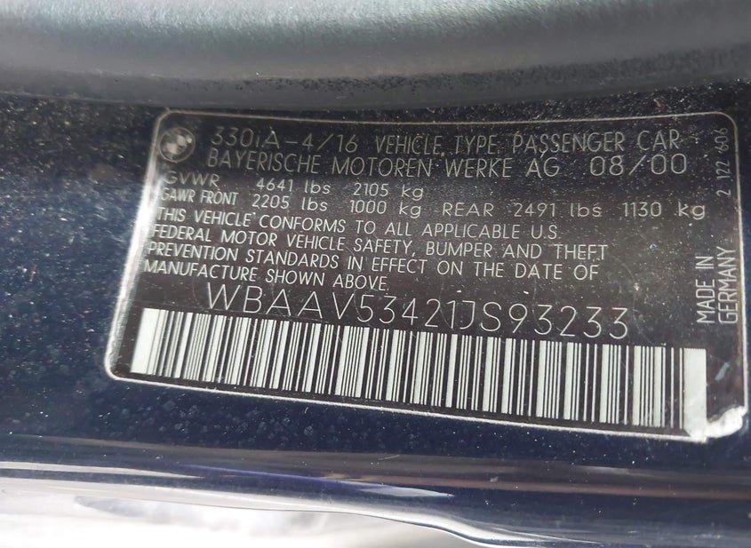 - VIN: WBAAV53421JS93233