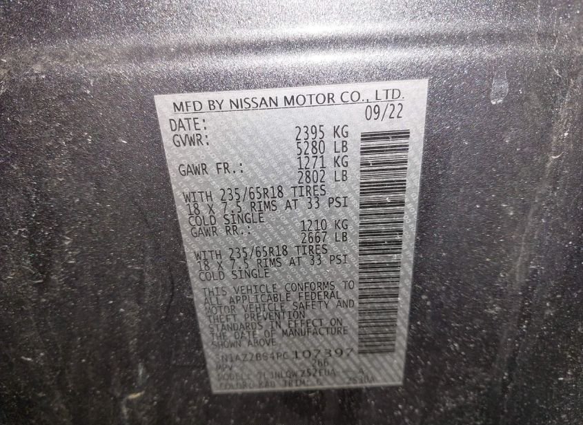 - VIN: 5N1AZ2BS4PC107397