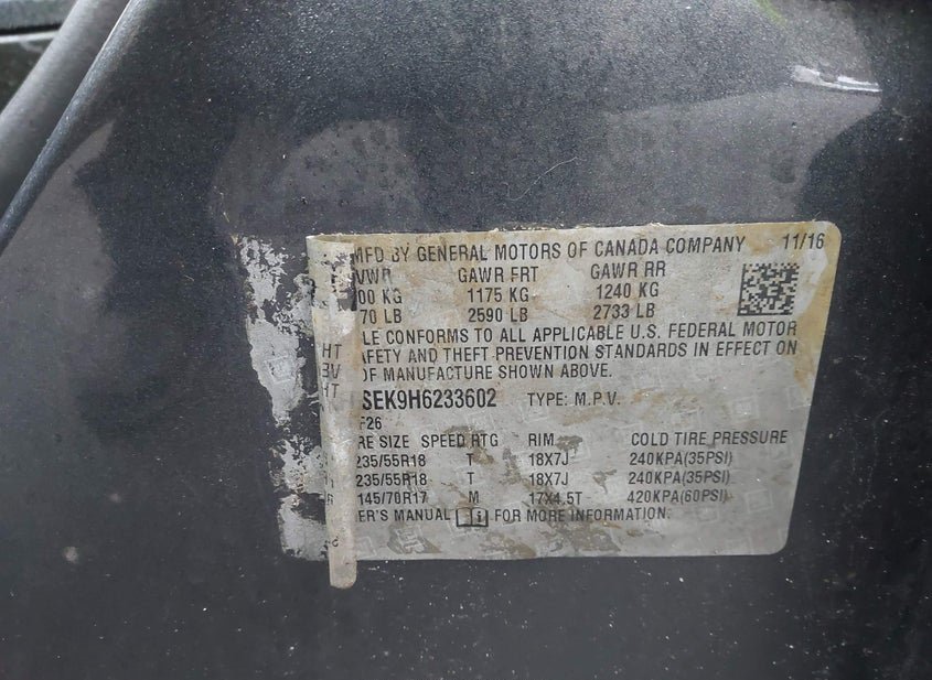 - VIN: 2GKFLSEK9H6233602