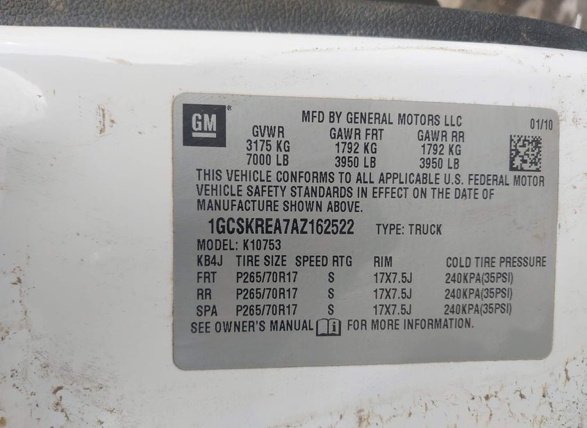 - VIN: 1GCSKREA7AZ162522