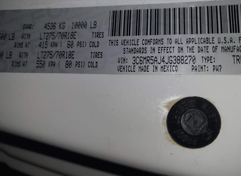 - VIN: 3C6MR5AJ4JG388270