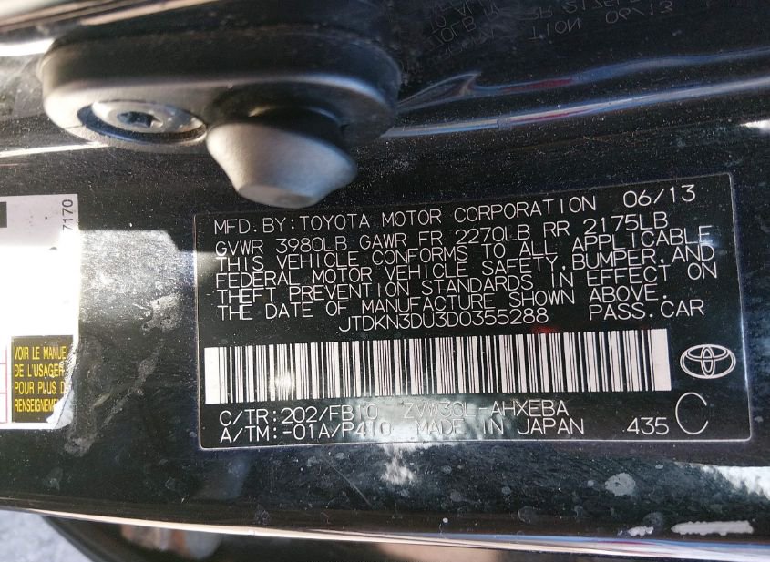 - VIN: JTDKN3DU3D0355288