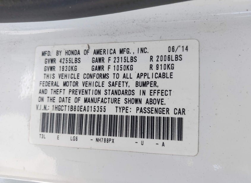 - VIN: 1HGCT1B80EA015355