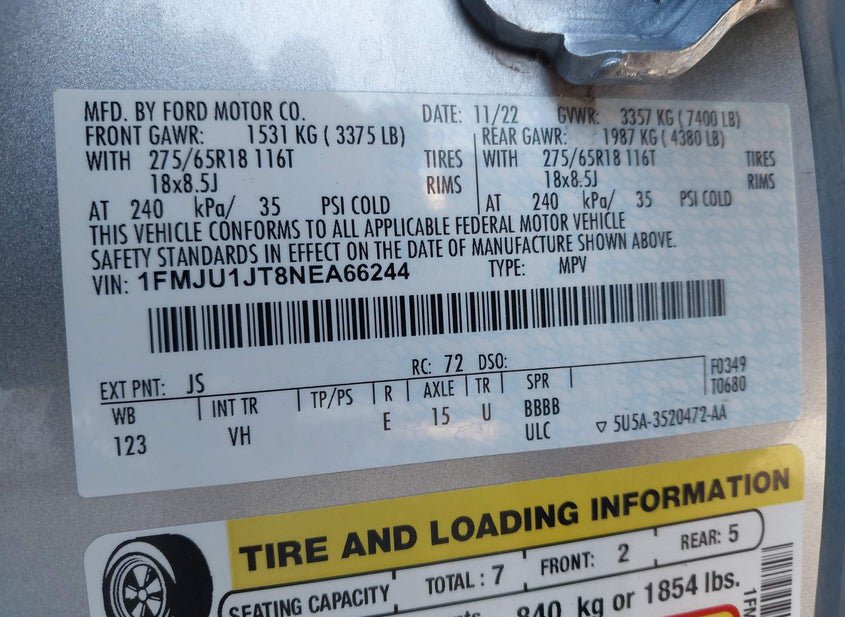 - VIN: 1FMJU1JT8NEA66244