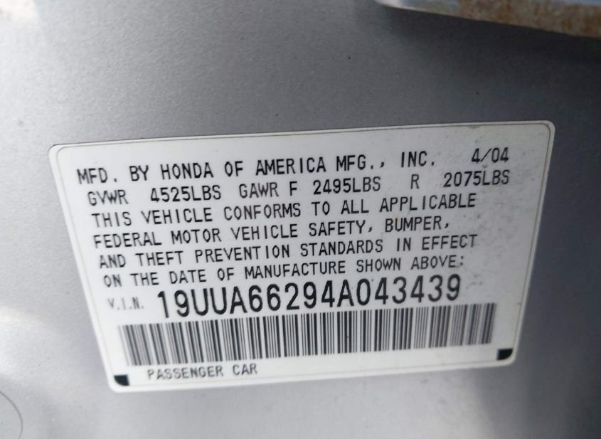 - VIN: 19UUA66294A043439