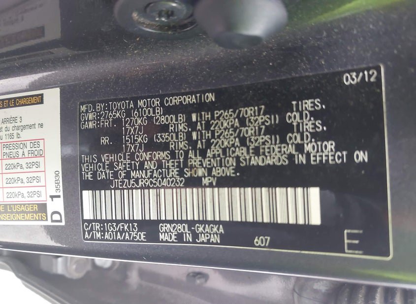 - VIN: JTEZU5JR9C5040232