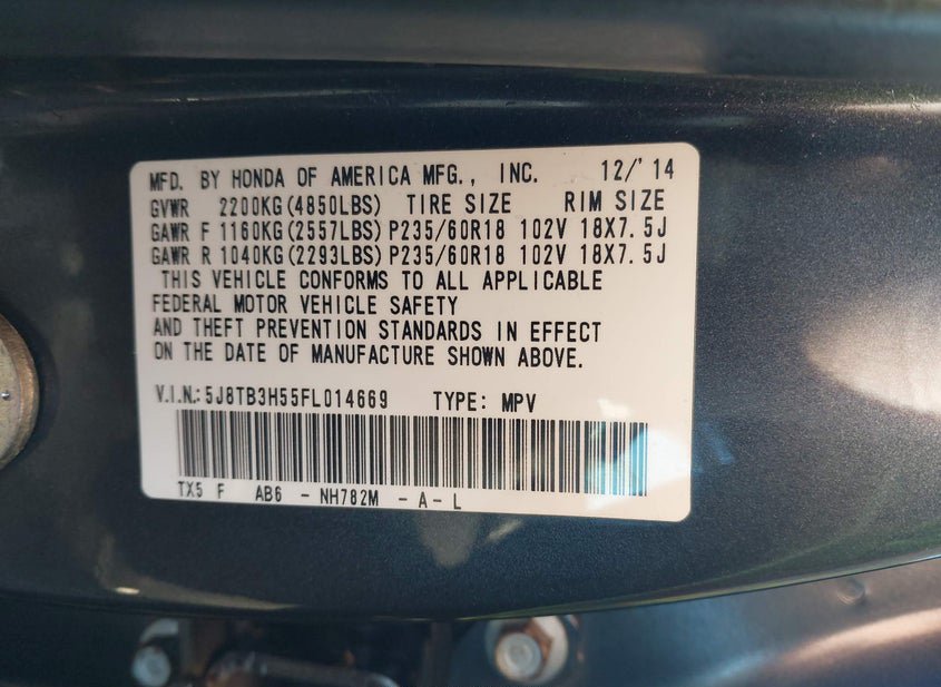 - VIN: 5J8TB3H55FL014669