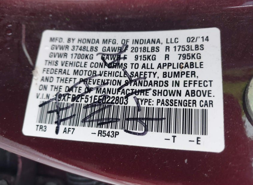 - VIN: 19XFB2F51EE022803