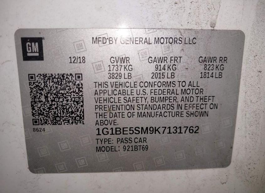 - VIN: 1G1BE5SM9K7131762
