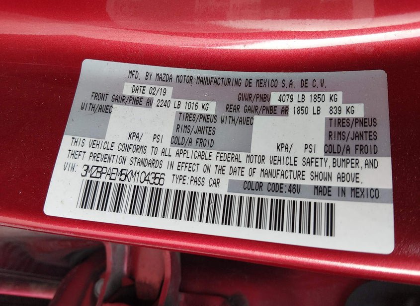 - VIN: 3MZBPAEM5KM104356