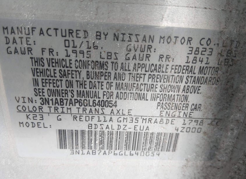 - VIN: 3N1AB7AP6GL640054