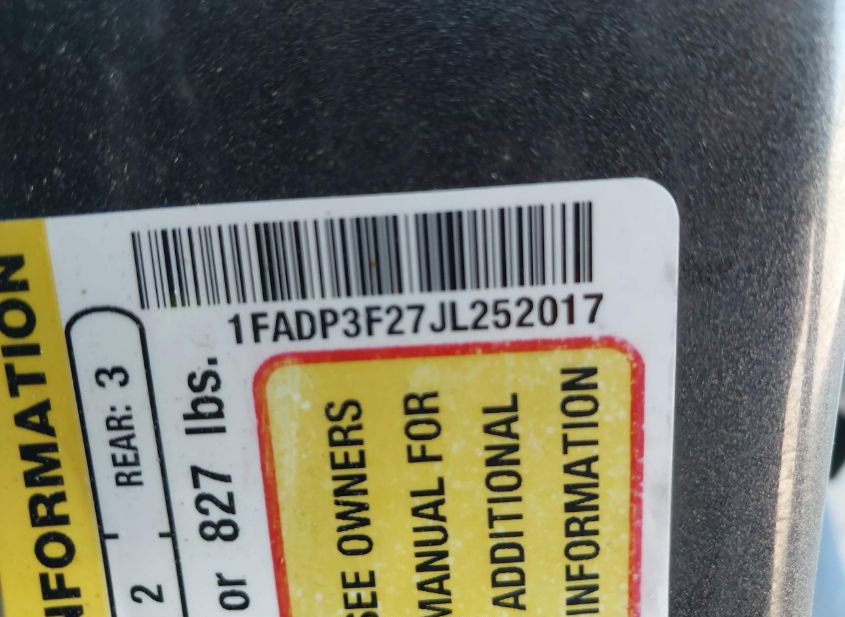 - VIN: 1FADP3F27JL252017