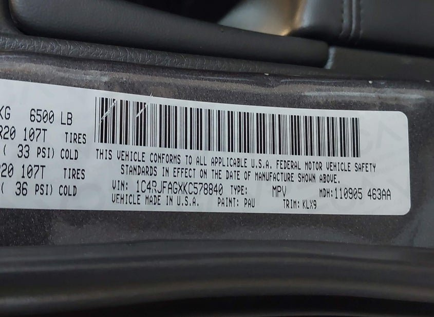 - VIN: 1C4RJFAGXKC578840