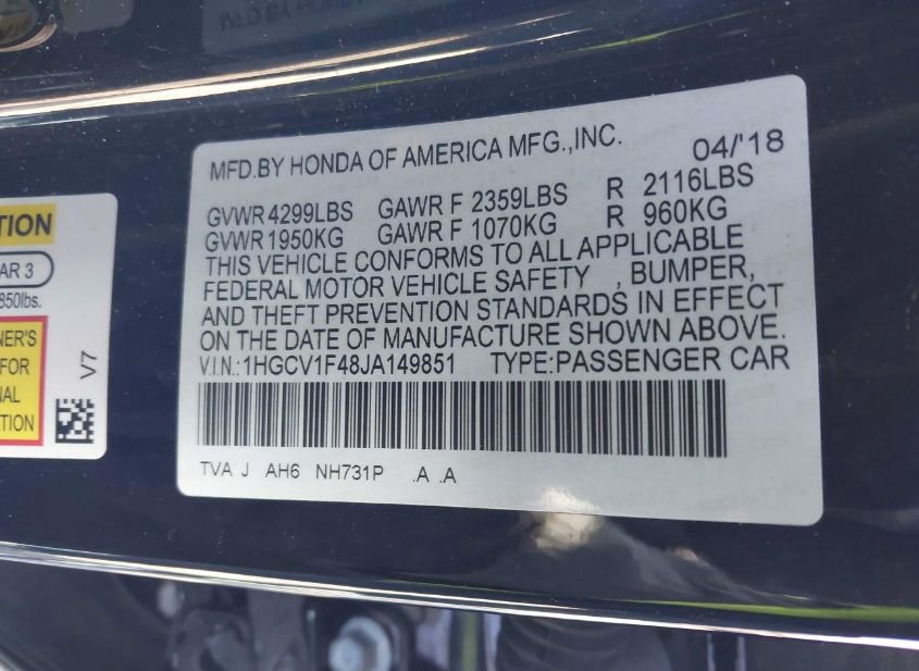 - VIN: 1HGCV1F48JA149851