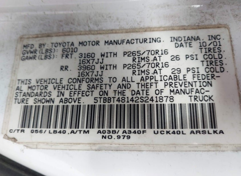 - VIN: 5TBBT48142S241878