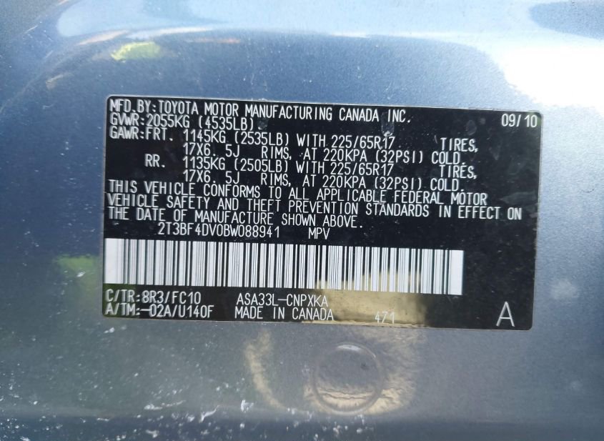 - VIN: 2T3BF4DV0BW088941