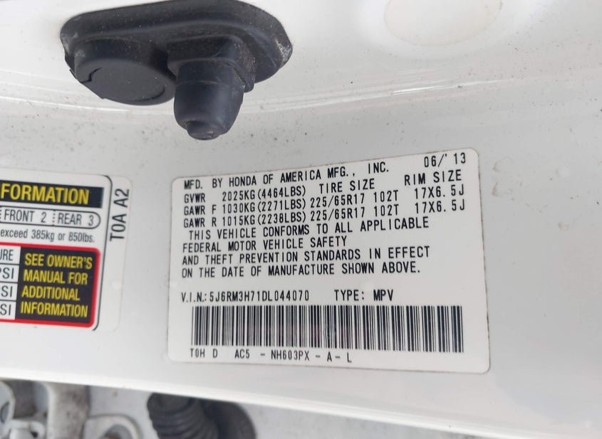 - VIN: 5J6RM3H71DL044070