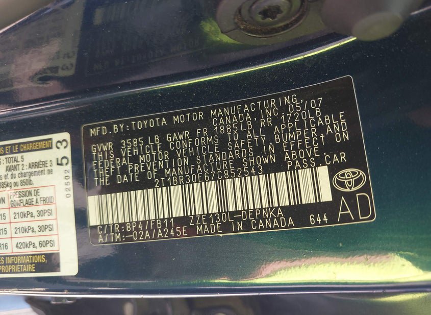 - VIN: 2T1BR30E67C852543