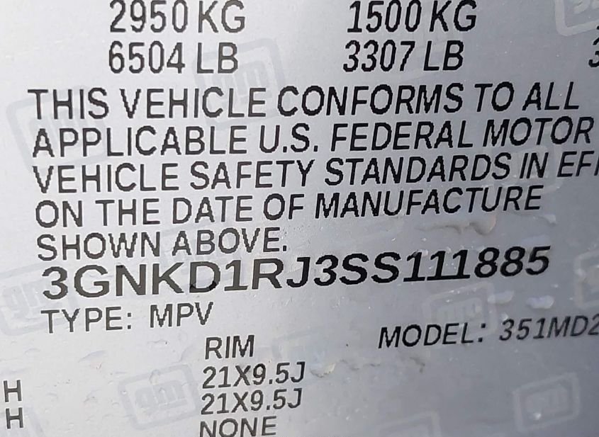 - VIN: 3GNKD1RJ3SS111885