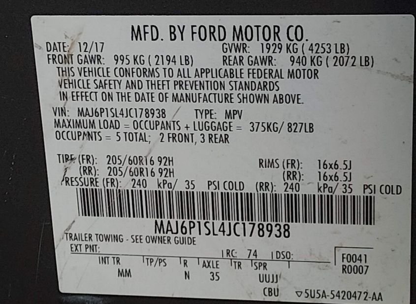 - VIN: MAJ6P1SL4JC178938