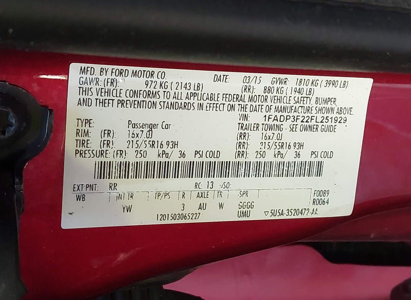 - VIN: 1FADP3F22FL251929