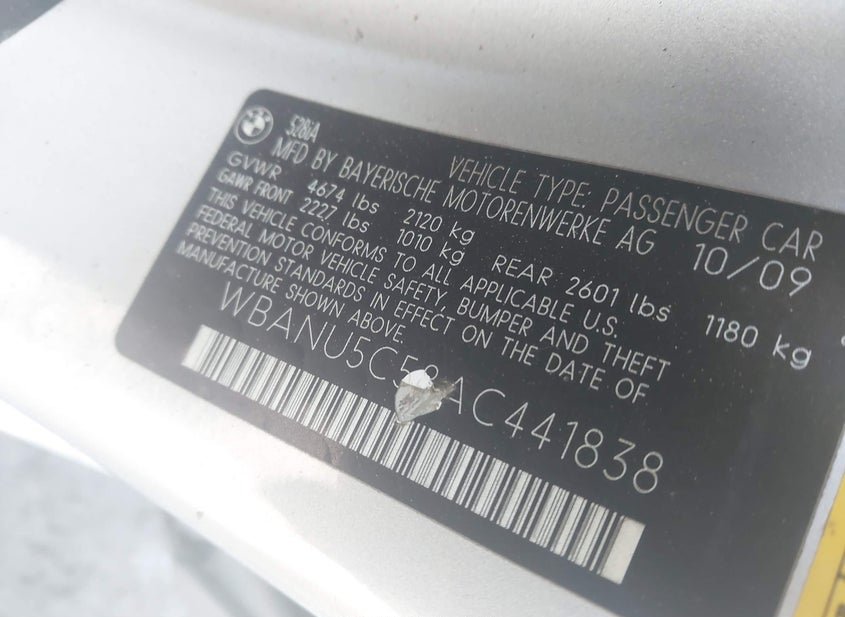 - VIN: WBANU5C58AC441838