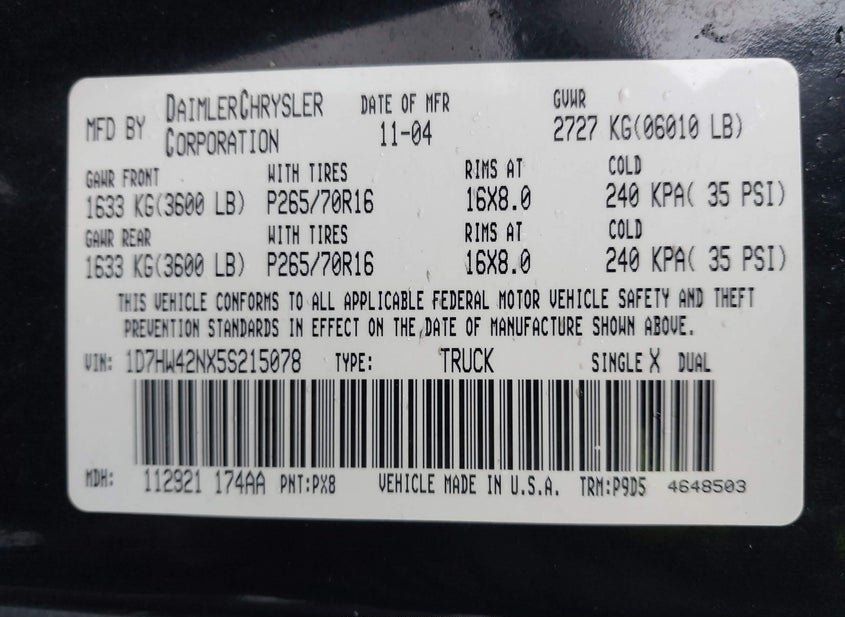 - VIN: 1D7HW42NX5S215078