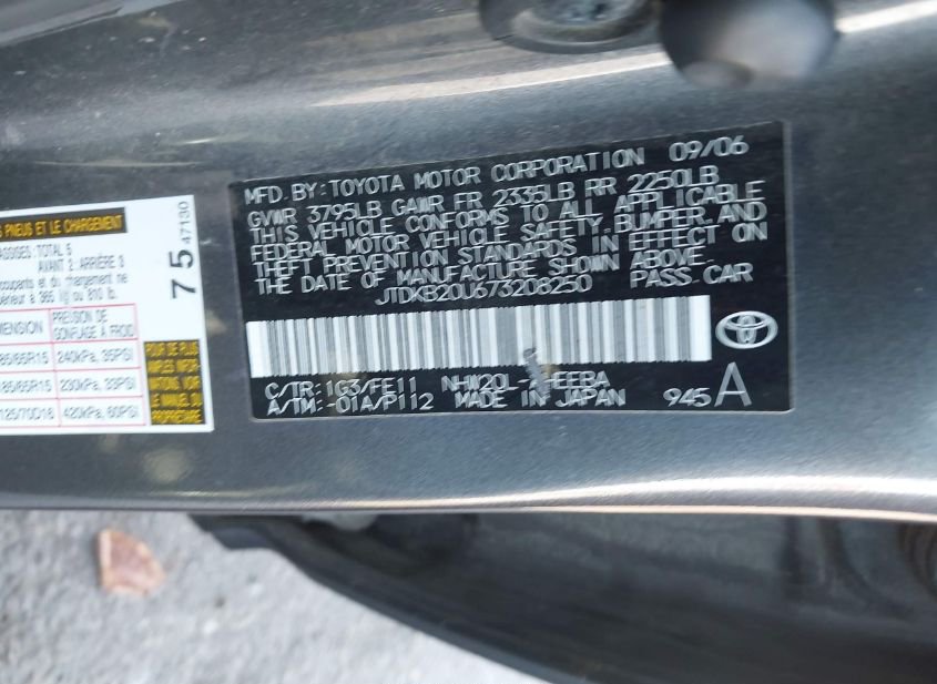 - VIN: JTDKB20U673208250