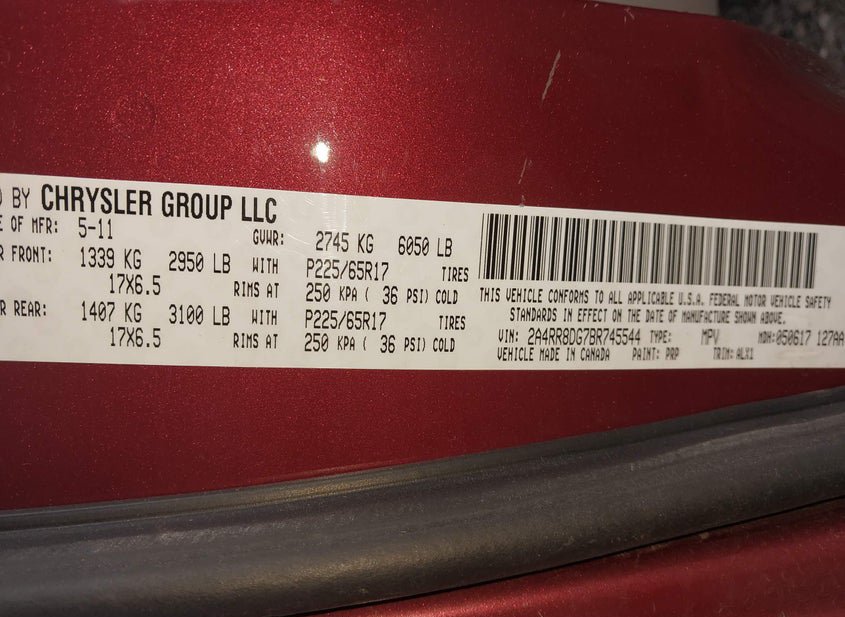 - VIN: 2A4RR8DG7BR745544