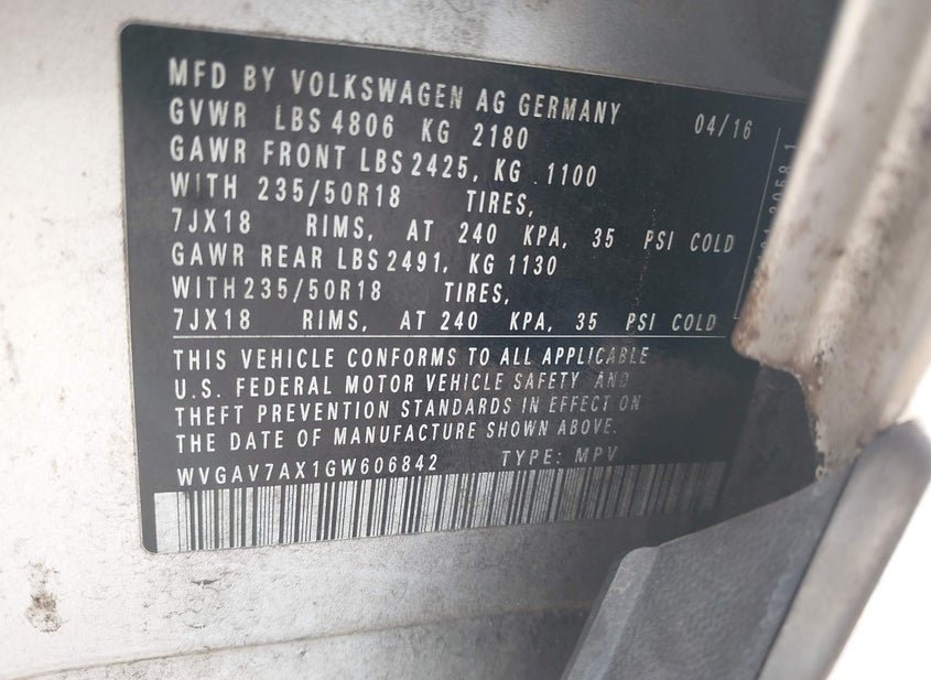 - VIN: WVGAV7AX1GW606842