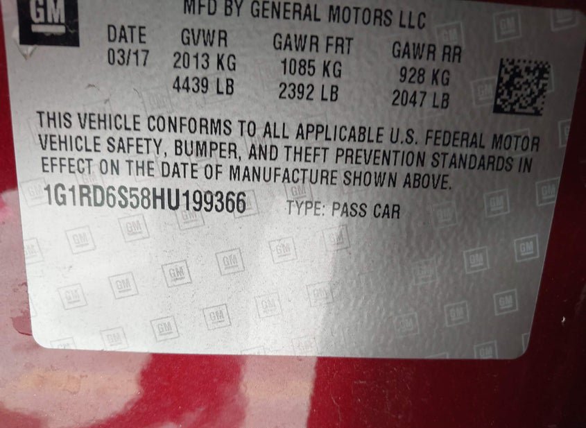 - VIN: 1G1RD6S58HU199366