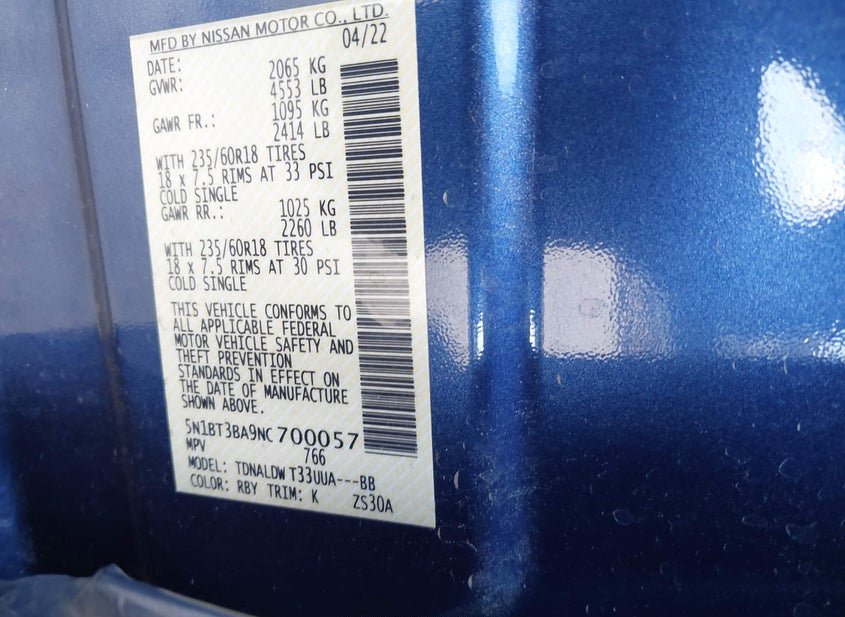 - VIN: 5N1BT3BA9NC700057
