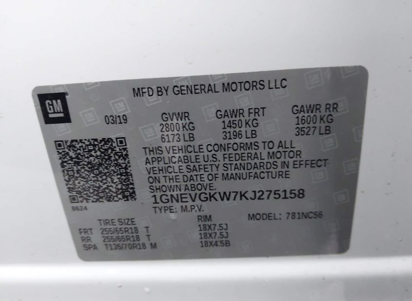 - VIN: 1GNEVGKW7KJ275158