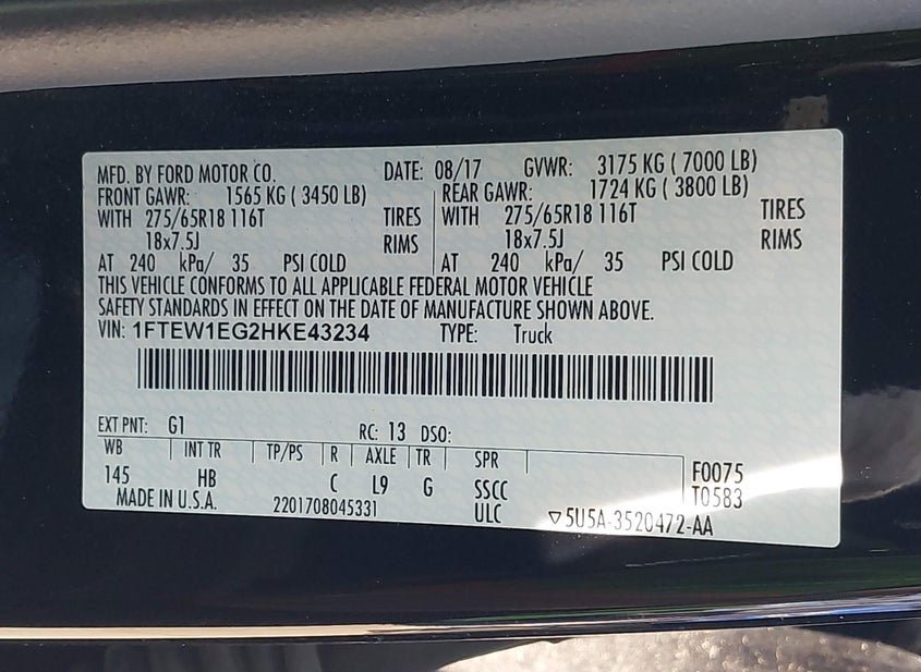 - VIN: 1FTEW1EG2HKE43234