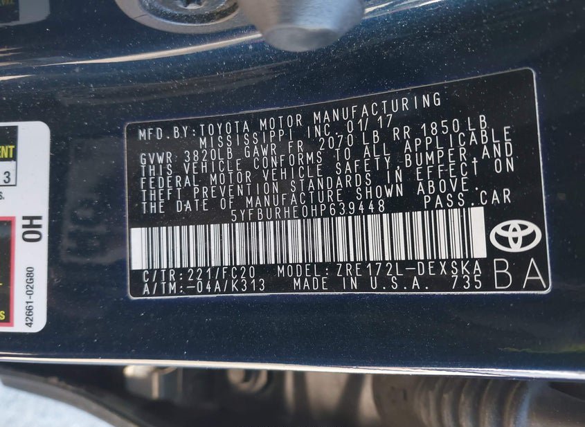 - VIN: 5YFBURHE0HP639448