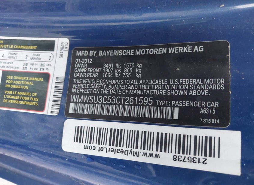 - VIN: WMWSU3C53CT261595