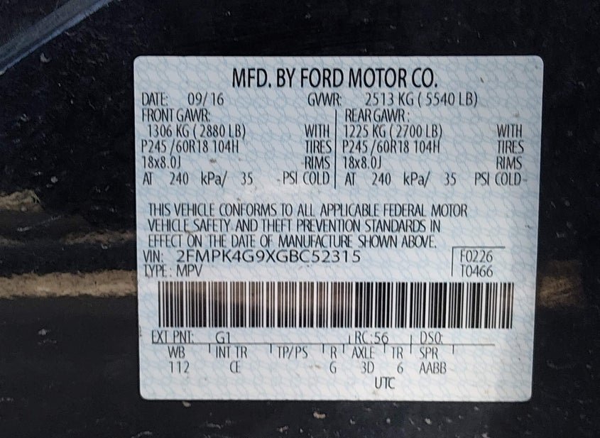 - VIN: 2FMPK4G9XGBC52315