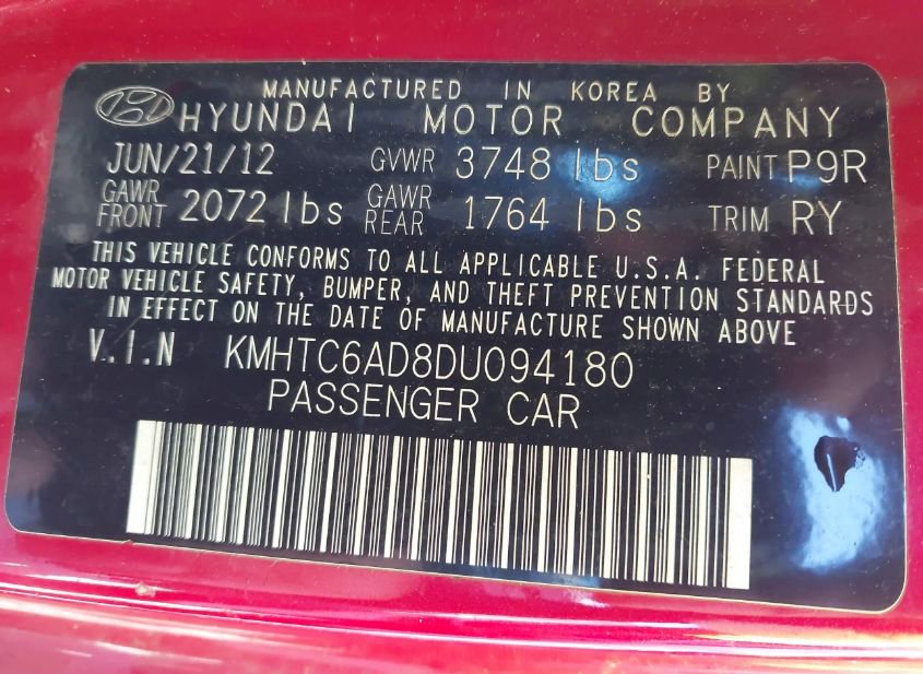 - VIN: KMHTC6AD8DU094180