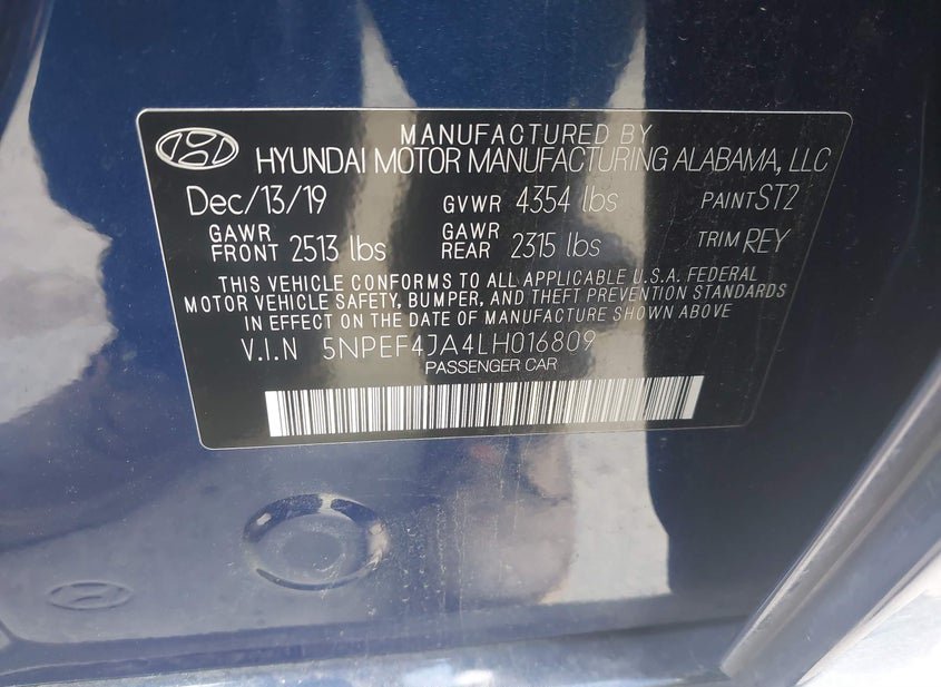 - VIN: 5NPEF4JA4LH016809