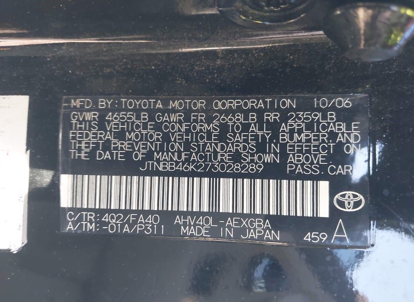 - Название лота: 2007 TOYOTA CAMRY HYBRID