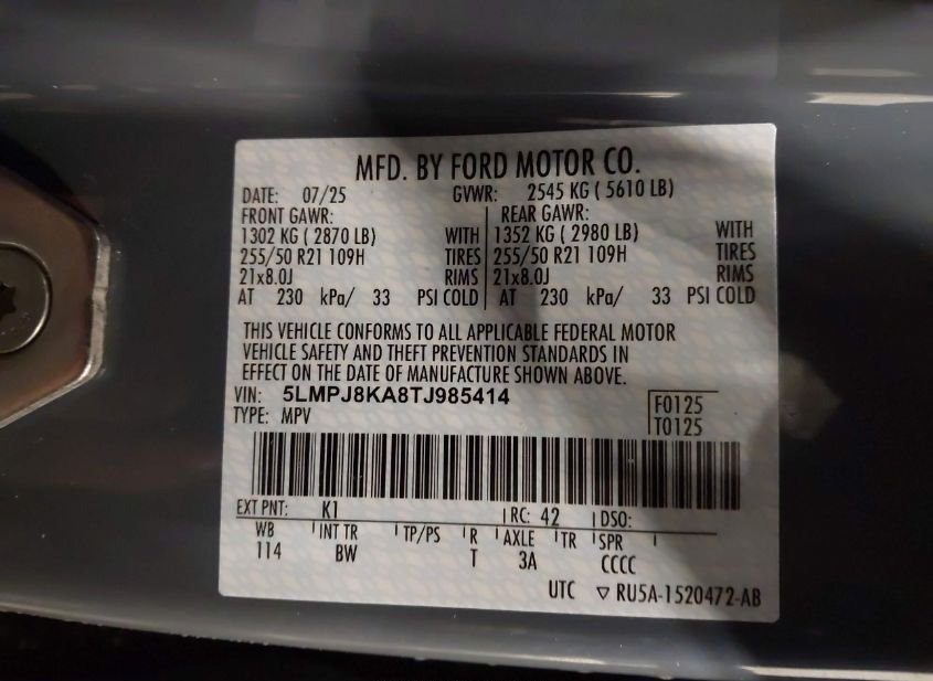 - VIN: 5LMPJ8KA8TJ985414