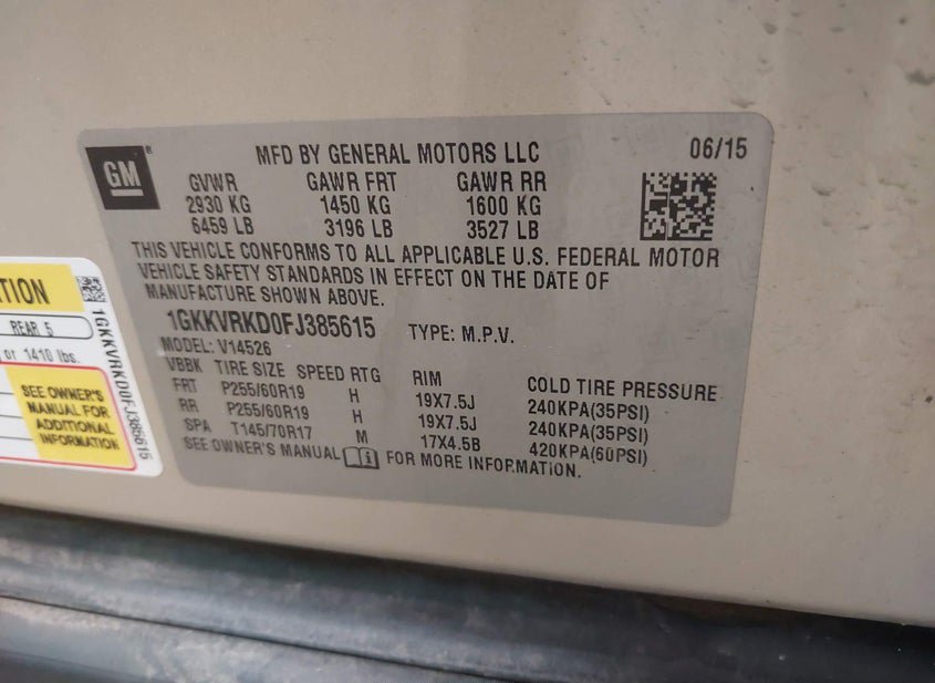 - VIN: 1GKKVRKD0FJ385615