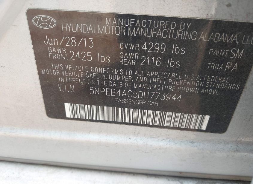 - VIN: 5NPEB4AC5DH773944