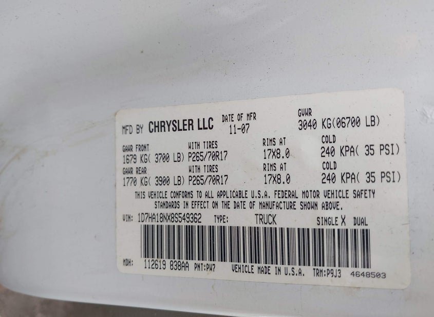 - VIN: 1D7HA18NX8S549362