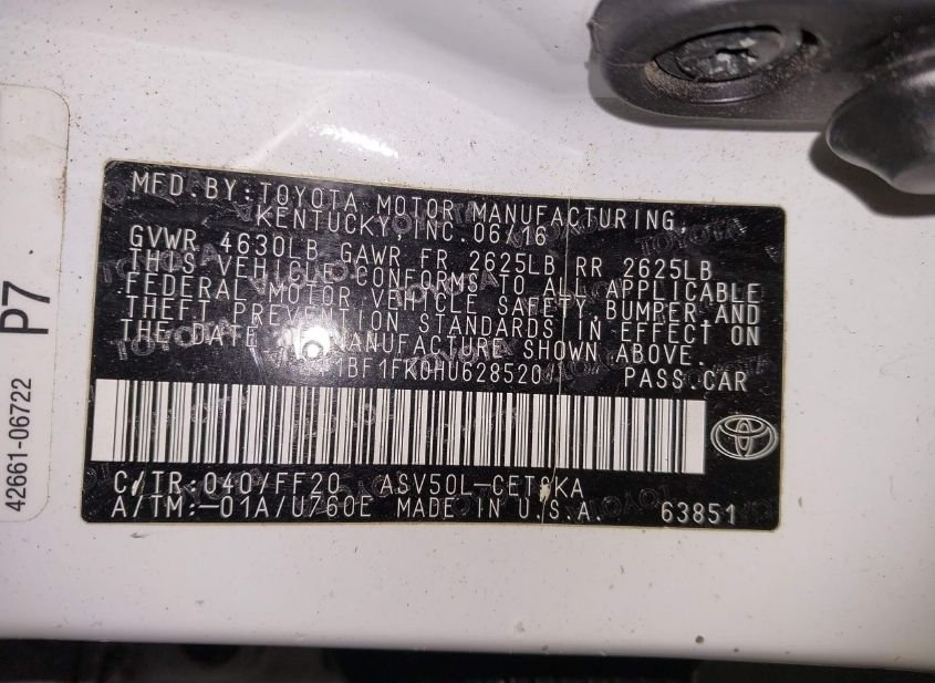 - VIN: 4T1BF1FK0HU628520