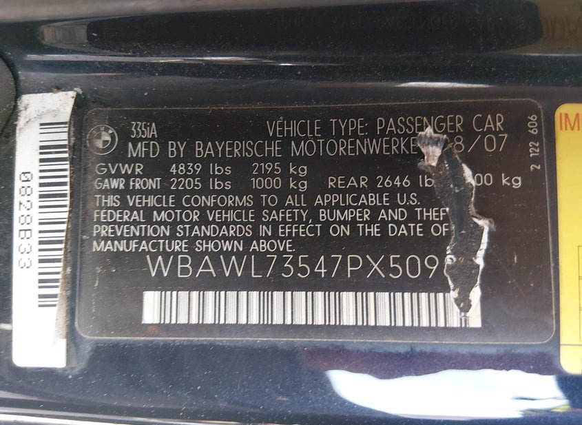 - VIN: WBAWL73547PX50985