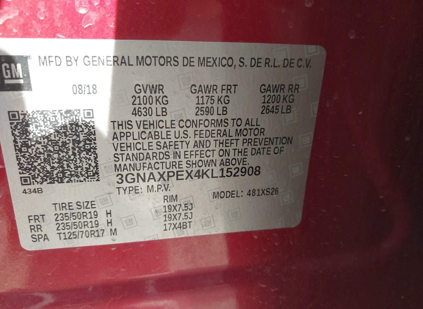 - VIN: 3GNAXPEX4KL152908