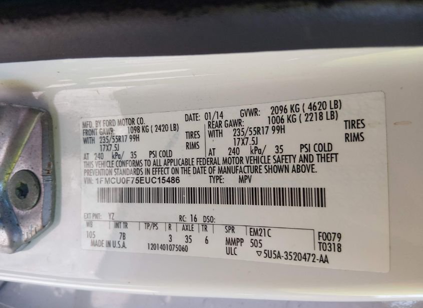 - VIN: 1FMCU0F75EUC15486