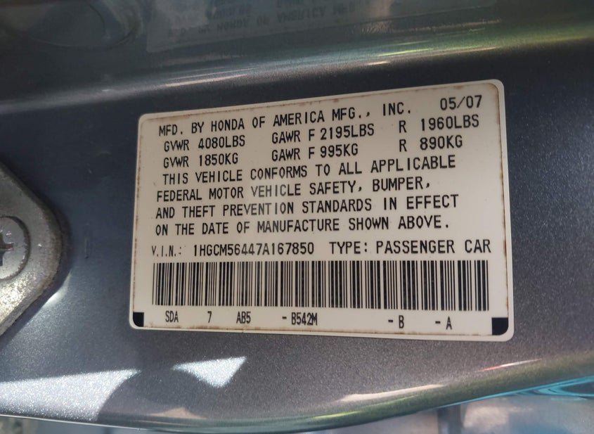- VIN: 1HGCM56447A167850